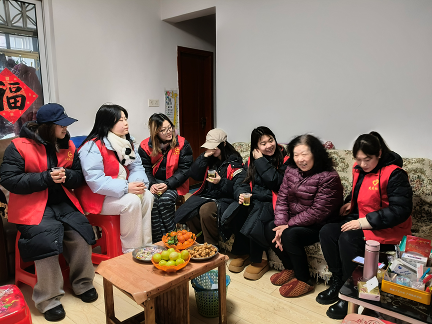 人文与艺术学院青年志愿者协会走进社区独居老人家中,并精心准备了文艺节目。杨奕然和潘晓枫同学现场演唱经典歌曲《我和我的祖国》。同时,