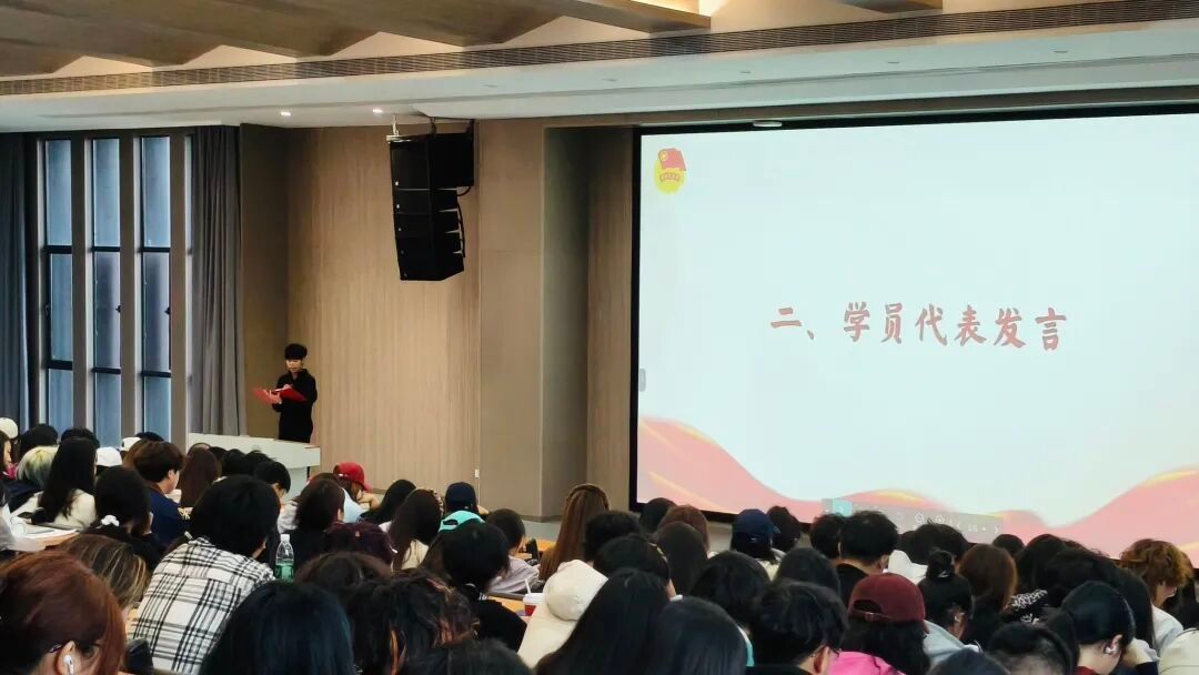 入团积极分子代表、2025级播音与主持艺术专业学生闫酣宇在发言中表达了对参加此次培训的荣幸与期待。他表示,能够成为入团积极分子是一份荣誉,更是一份责任。在接下来的学习中,将以饱满的热情、端正的态度投入到课程学习中,认真学习团的知识,不断提升自我,争取早日成为一名光荣的共青团员。