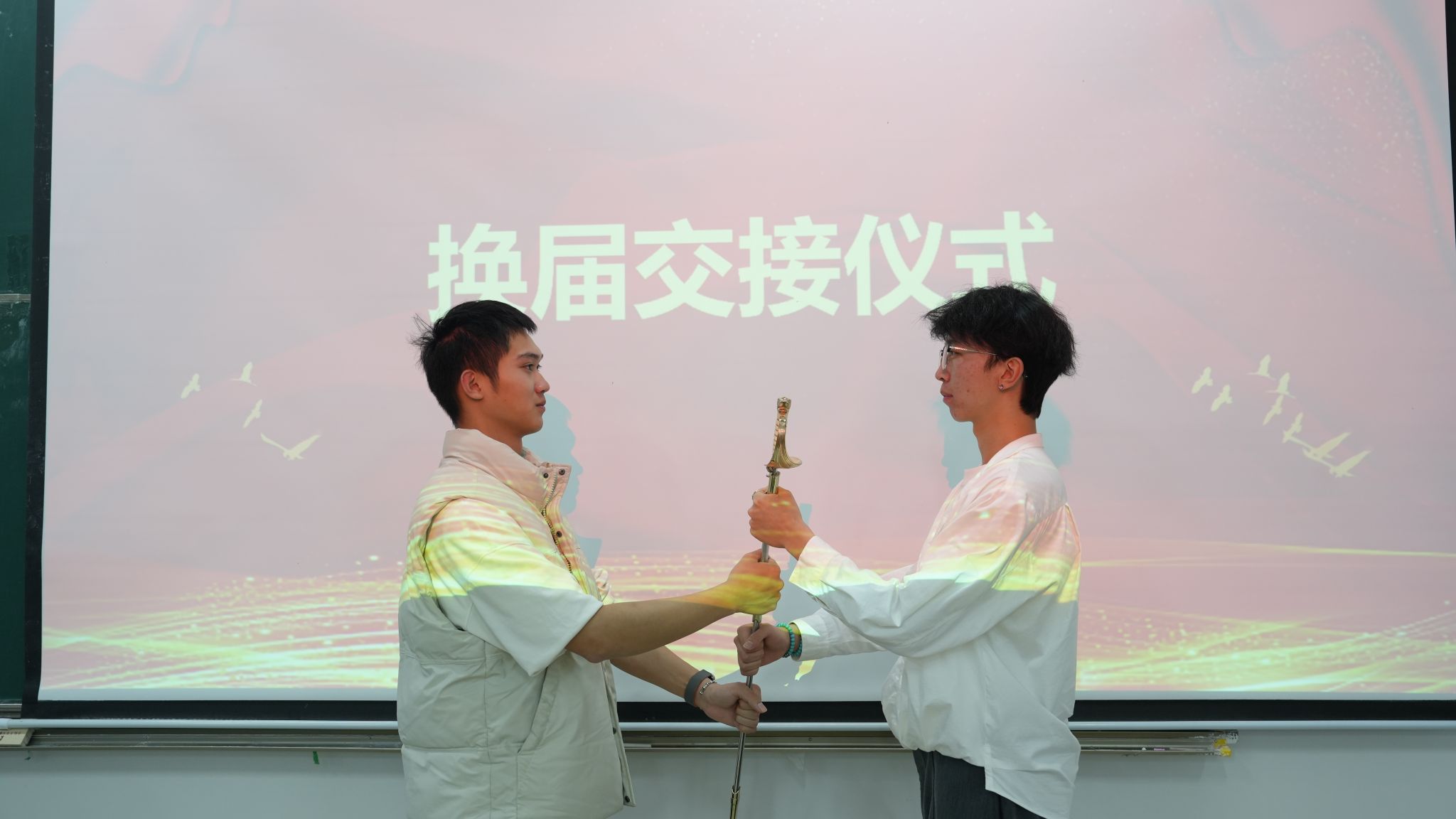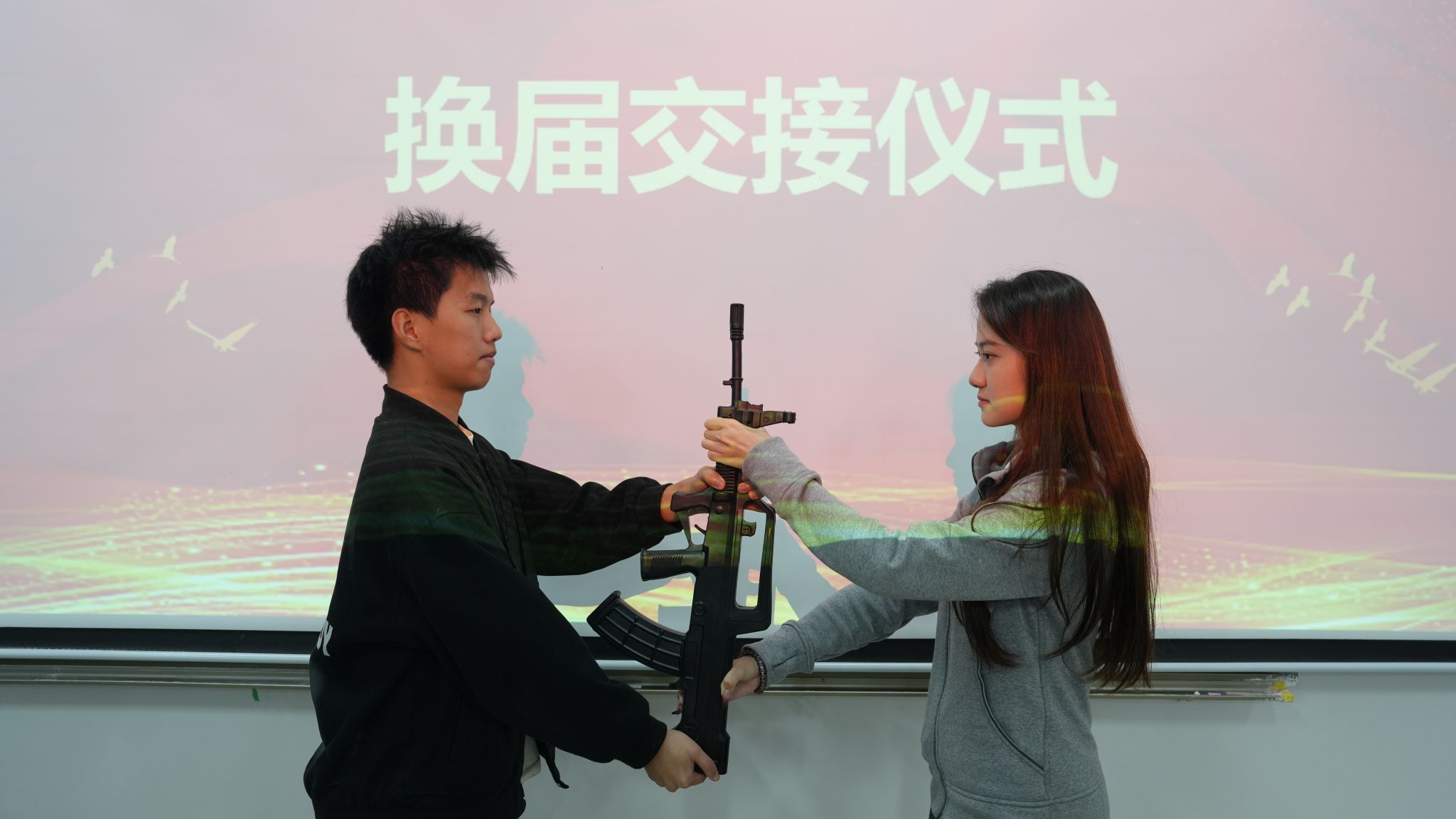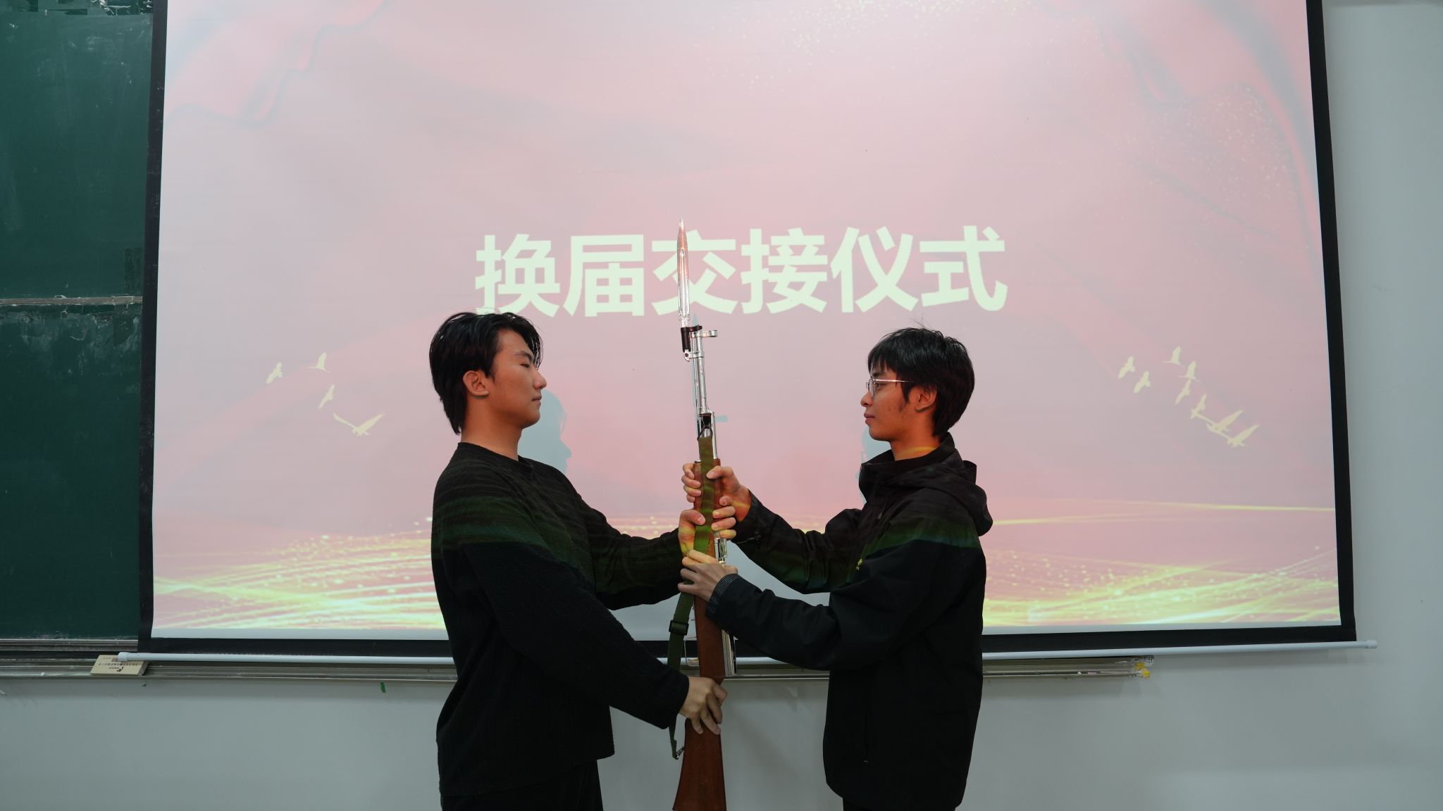 大会最具仪式感的环节是指挥刀、礼宾枪和95式挂枪的换届交接,全体队员注视着这一时刻,双手交接的瞬间,不仅是物品的传递,更是责任与精神的传承。