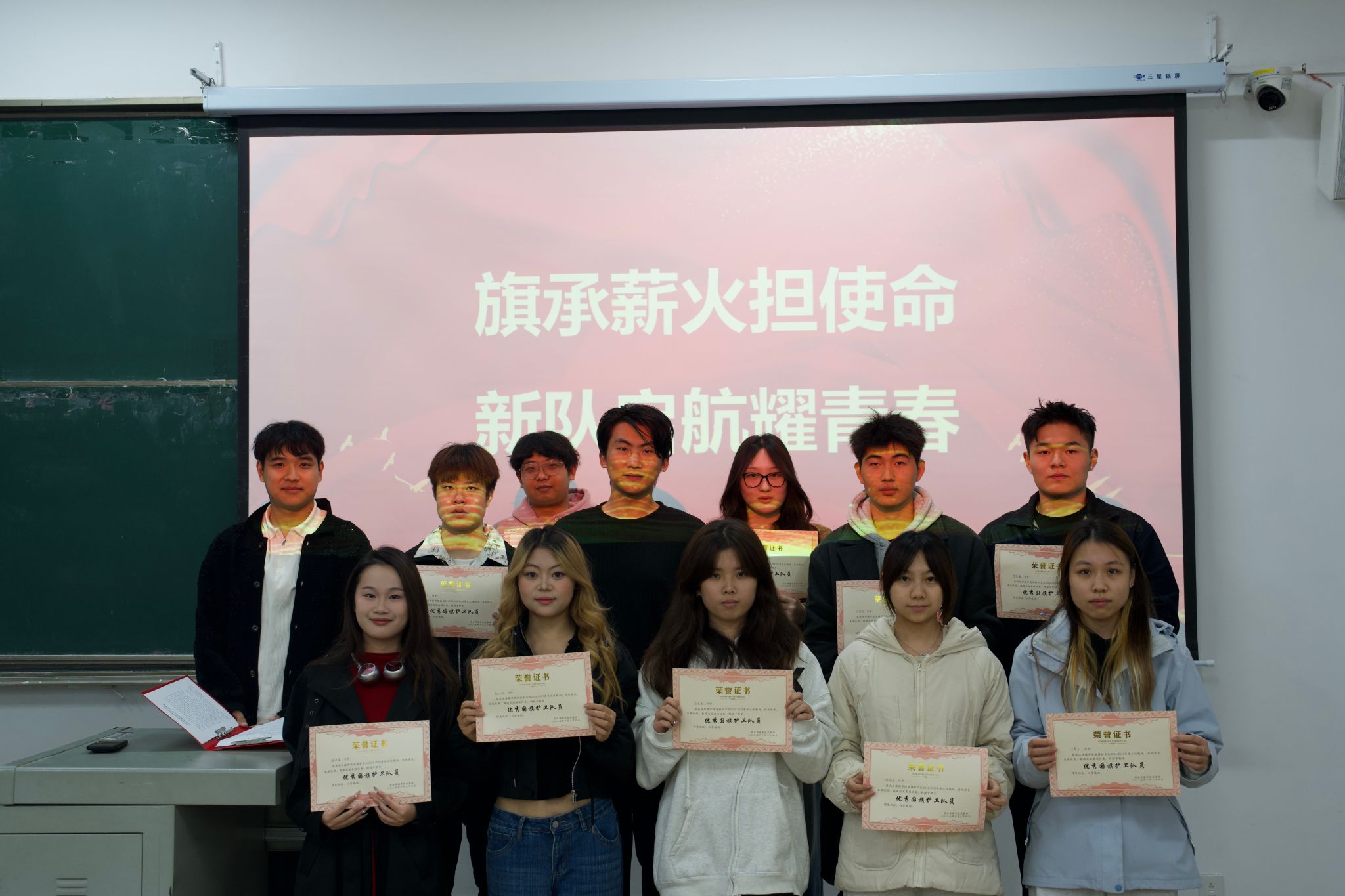为表彰上一届队员的突出贡献,大会特别设置颁奖环节。光老师为“优秀队员”颁发奖状,获奖队员双手接过荣誉,现场响起热烈掌声,既是对先进的肯定,也为新队员树立了学习的榜样。