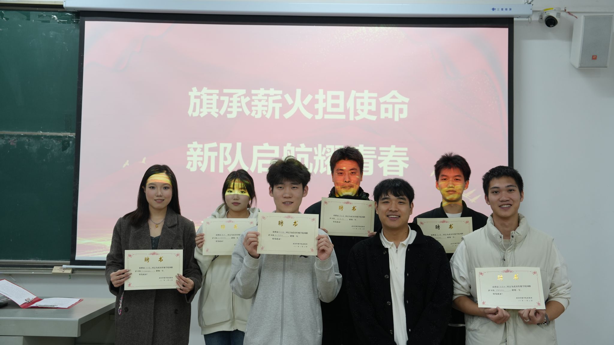 本次换届大会不仅是武汉传媒学院国旗护卫队的一次“新老交替”,更是校园爱国主义教育的一次生动实践。从老队员的经验传递,到新队员的责任承接,从老师的殷切寄语,到庄重的交接仪式,每一个环节都在强化“护旗即护心”的信念。