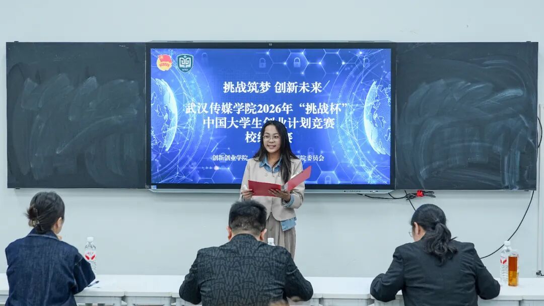 共青团武汉传媒学院委员会网讯(通讯员:蔡璐)4月21日,武汉传媒学院2026年“挑战杯”大学生课外学术科技作品竞赛校级决赛在校本部举行。经前期动员宣传、学院初评推荐、专家评审等环节,共有23支队伍进入校级决赛。各参赛团队围绕专业所学和实际需求,展示了阶段性学术科技创新成果,体现了学校青年学生积极参与科技创新实践的良好风貌。