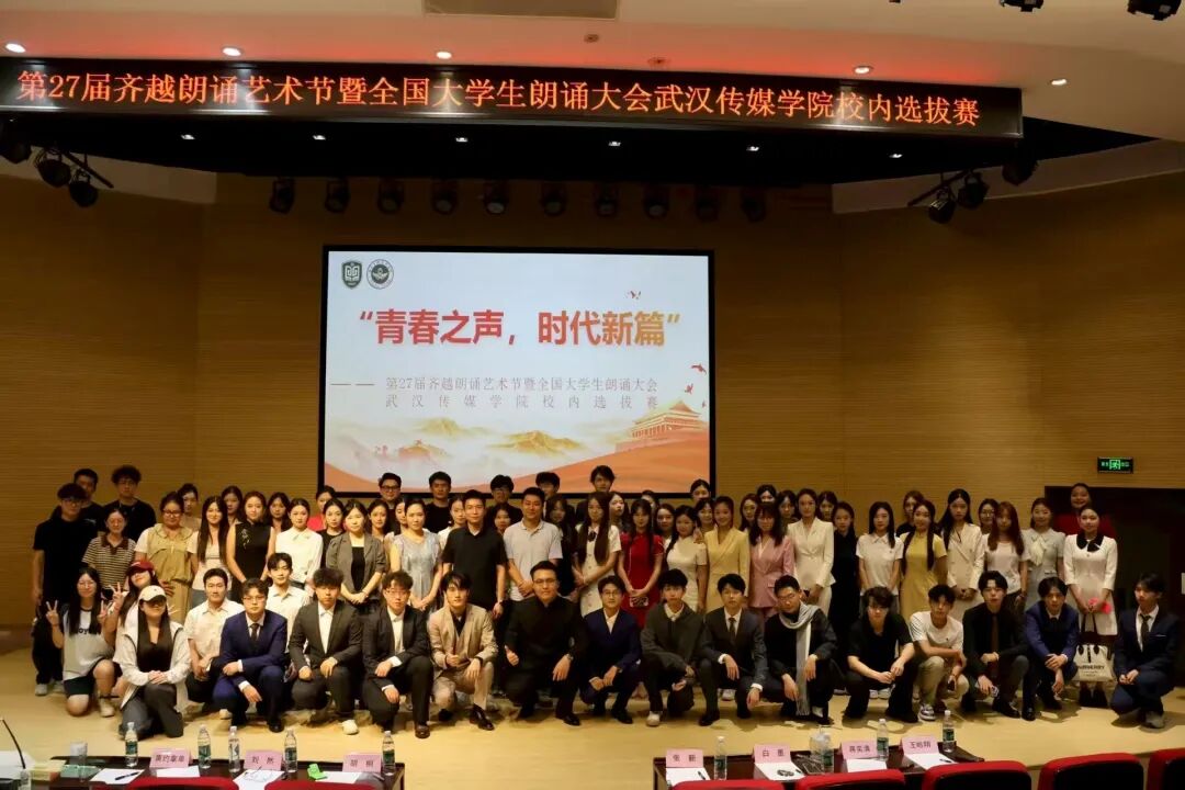 为发掘优秀朗诵人才,彰显新时代大学生的家国情怀与专业风采,2025年9月8日,由武汉传媒学院主办、播音主持艺术学院承办的第27届齐越朗诵艺术节暨全国大学生朗诵大会校内选拔大赛在圆形报告厅举行。